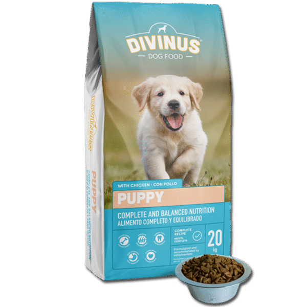 Divinus Puppy to wysokiej jakości sucha karma stworzona specjalnie dla szczeniąt wszystkich ras. Dzięki odpowiednio zbilansowanej formule wspiera prawidłowy rozwój młodego psa już od pierwszych tygodni życia.